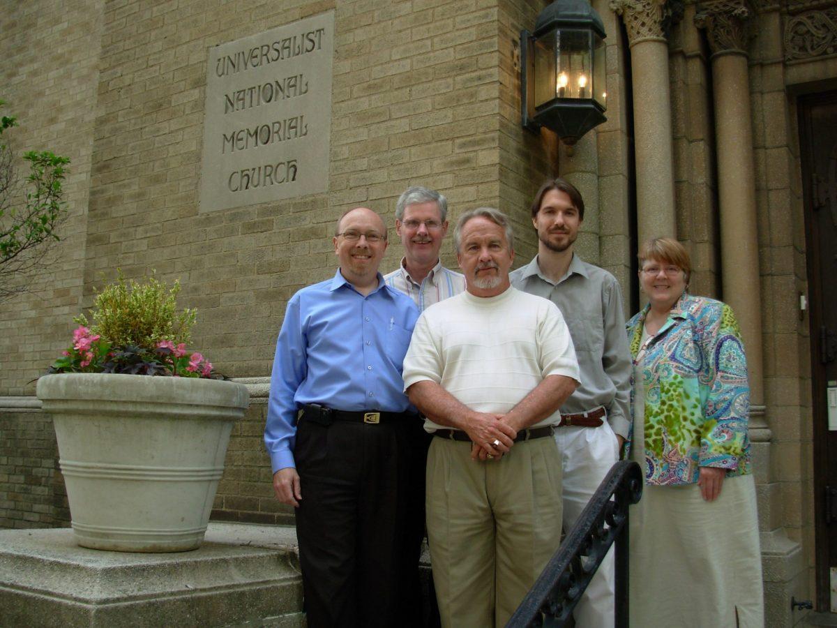 The Christian Universalist Association held its founding meeting at Universalist National Memorial Church in Washington, D.C., on May 16-17, 2007. Five members of the CUA Board of Directors attended the meeting in person (shown and listed above). Five other Board members participated by telephone conference call: Rev. Dr. John Morgan, Brad Edwards, Dr. Ken R. Vincent, Dr. Cecil E. Bohanon, and Rev. Felicia Urbanski. One non-Board member attended the meeting in person: Todd Miller of Bushland Community Church in Amarillo, Texas. One Board member was not able to participate because of medical reasons: Charles Slagle. Two of the 13 total seats on the Board remained vacant at the time of the meeting, pending responses from people invited to serve.